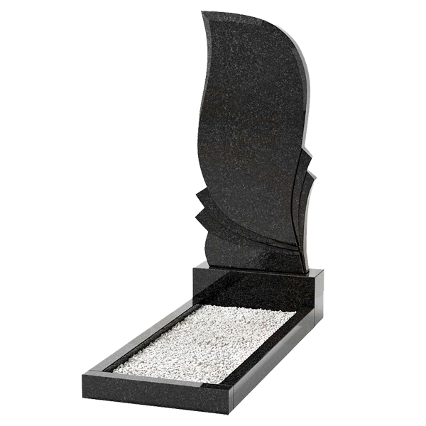 - памятники вертикальной ориентации, стандартных либо больших размеров, с вырезанными формами по верхней грани — волна, закругление, четверть круга, парус и т.п.;